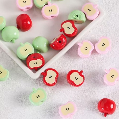Cuentas acrílicas de manzana de dibujos animados, cuentas sueltas DIY para hacer joyas, materiales de abalorios para niños, pulsera, colgante de llavero de teléfono