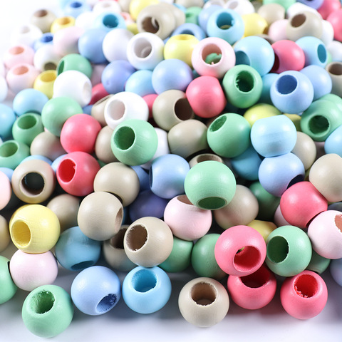 Cuentas espaciadoras sueltas de bola redonda de madera Natural con agujero de 20MM de colores ecológicos de 10mm para fabricación de joyería llavero DIY